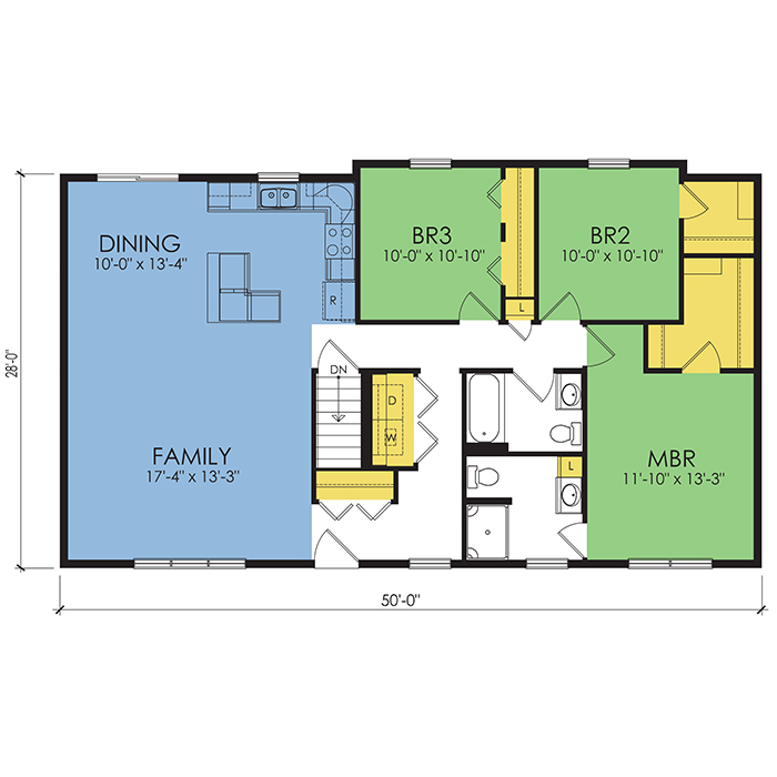 A part of our Wausau Originals, the Covington floor plan features 3 bedrooms and 2 bathrooms with a foot print of 50x28 feet and 1424 total square feet of living space. Floor Plan #WO120