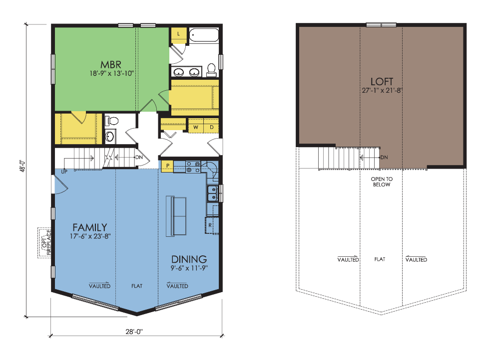 A part of our Wausau Originals, the Harwood floor plan features 1 bedroom and 1.5 bathrooms with a foot print of 28x48 feet and 1906 total square feet of living space. Floor Plan #WO656