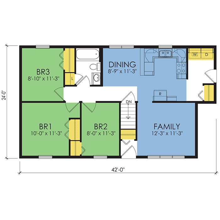 Return to SearchA part of our dream series, the tamarack floor plan features 3 bedrooms and 1.5 bathrooms with a foot print of 44x30 feet and 1342 total square feet of living space.