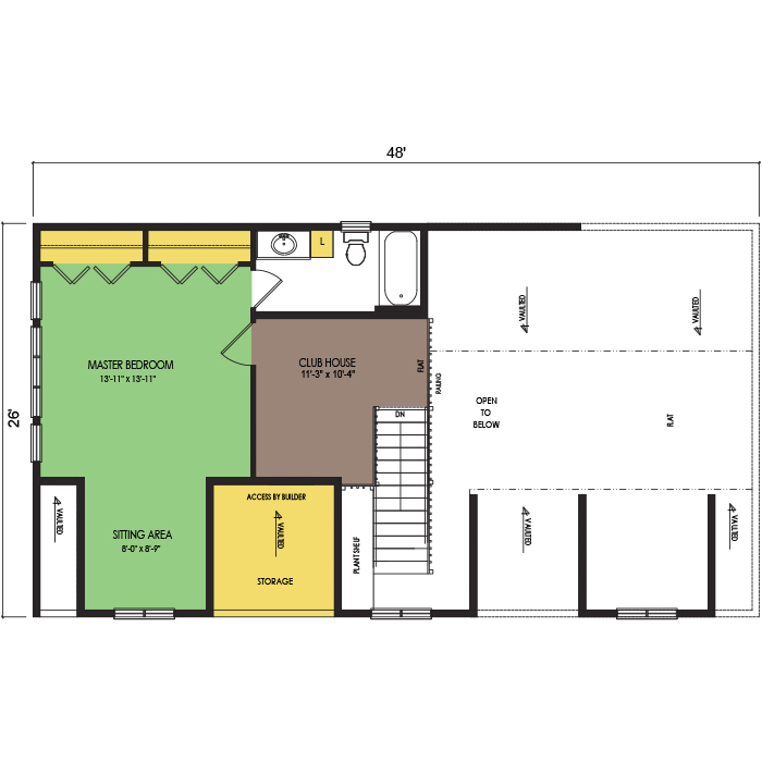 A part of our dream series, the tamarack floor plan features 3 bedrooms and 1.5 bathrooms with a foot print of 44x30 feet and 1342 total square feet of living space.